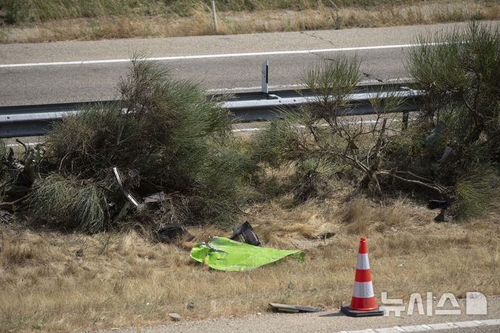 [사모라=AP/뉴시스] 3일(현지 시간) 스페인 북서부 사모라에서 잉글랜드 프리미어리그(EPL) 리버풀 공격수 디오구 조타와 그의 동생이 교통사고로 숨진 현장에 잔해 등이 남아 있다. 포르투갈축구